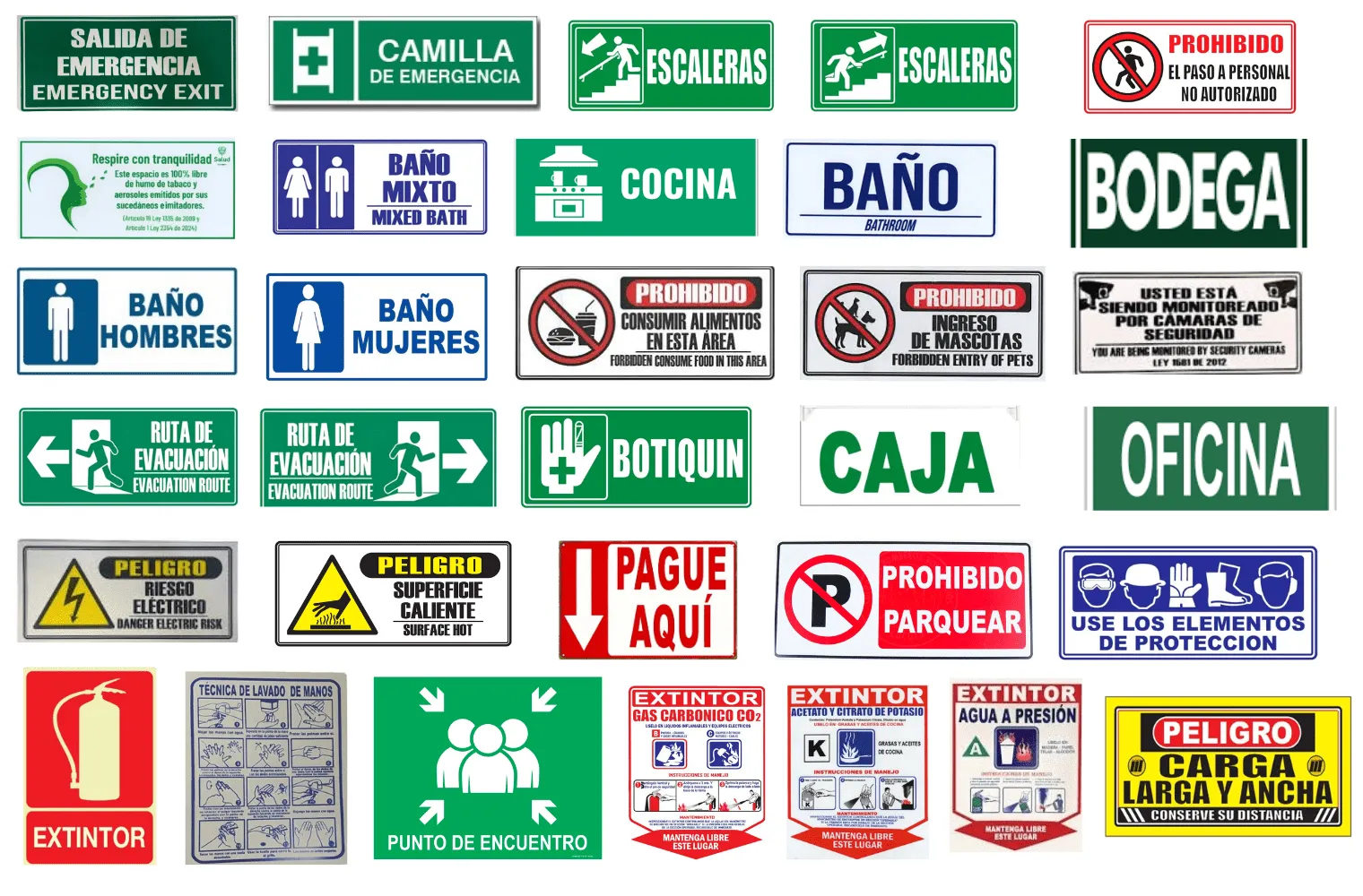 La señalización reglamentaria color verde se utiliza para informar rutas de evacuación, salidas de emergencia, puestos de primeros auxilios y equipos de rescate. Es de uso obligatorio en instalaciones públicas y privadas, según la normativa de seguridad vigente (ej. NTC 1461 en Colombia y normativas internacionales como ISO 7010 o NFPA 101).